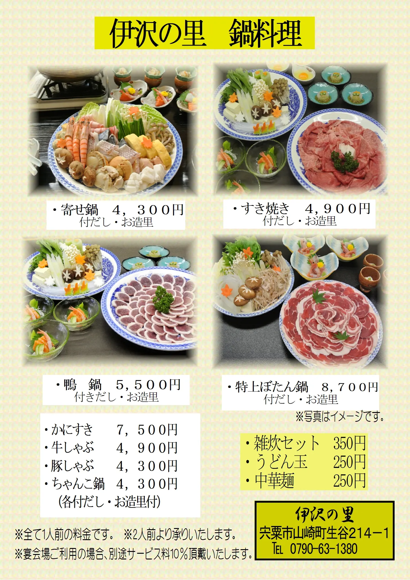 会席料理や鍋料理は前日までにご予約くださいませ。